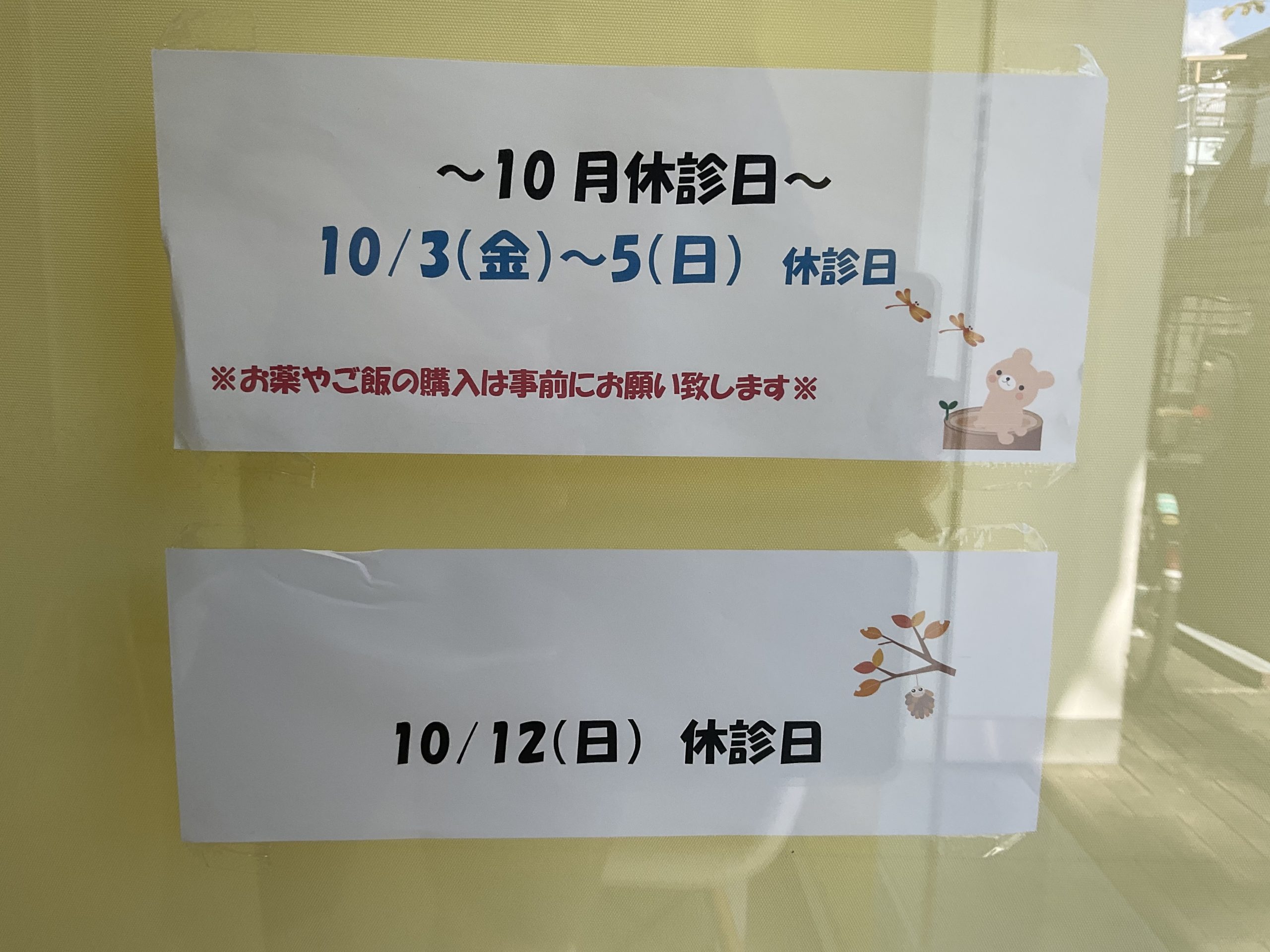 この連休は薬やフードの購入、急患の対応もできかねますのでご了承ください。